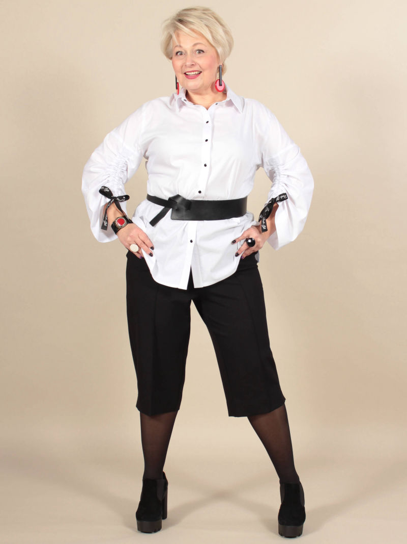 Базовые шорты из утягивающего плотного трикотажа. Мы их создавали для модниц, любящих пофорсить в высоких сапогах и ботфортах. Длина шорт продумана так, чтобы было удобно их сочетать с любой обувью. Для визуальной стройности спереди есть отстроченные стрелки. У шорт пояс на резинке, карманы. По низу брюк сбоку есть маленькие разрезы. РЕКОМЕНДАЦИЯ производителя! Чтобы верно выбрать размер наших брюк, ориентируйтесь, пожалуйста, на обхват бёдер. Именно эта мерка должна быть решающей. В поясе вставлена резинка, поэтому на талию брюки подойдут /брюки женские / штаны / кюлоты/шорты /plus size/плюс сайз/большие размеры/для полных женщин/надин оверсайз для девушек/белорусская одежда женская/Беларусь/офисное женское/свитер Белоруссия/oversize