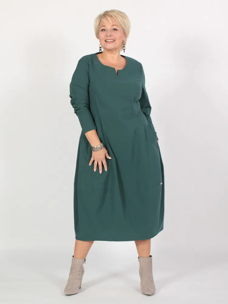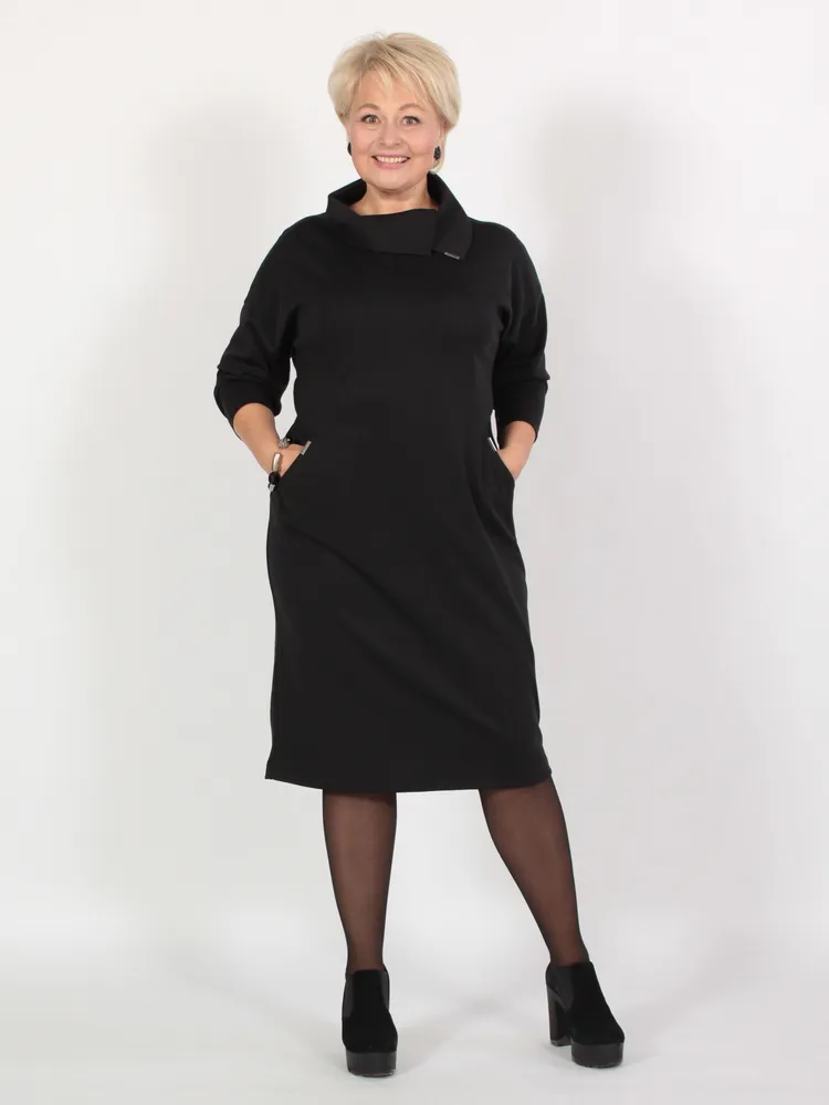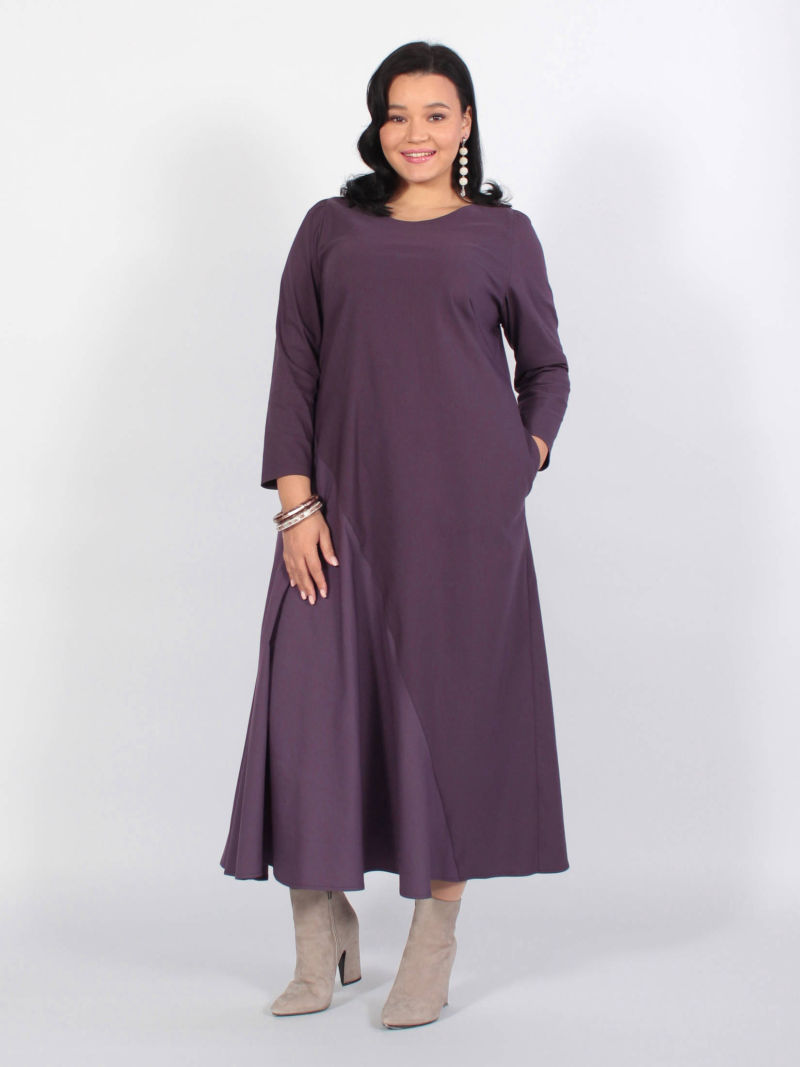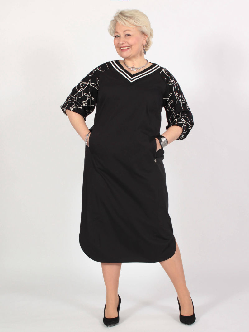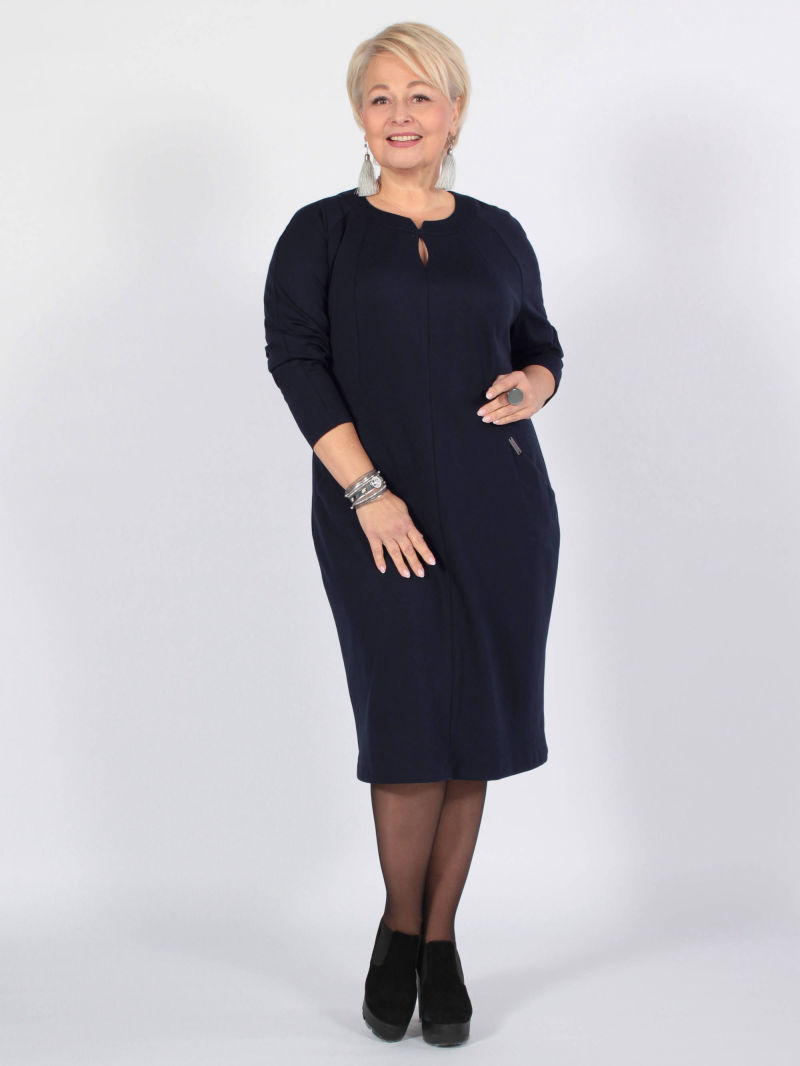 Уютное стильное платье средней длины из трикотажного футера с оригинальным дизайном. Горловина округлой формы-лодочка оформлена тонкой отделочной планкой в цвет. Линия плеча слегка спущена, рукав широкий, бочкообразный, длиной 3/4. Удобные вертикальные карманы выполнены в швах рельефов переда. По низу платья есть небольшие разрезы. Такое платье подойдет девушке, девочке на любой тип фигур больших размеров (груша, яблоко, и другие). Стильное платье из хлопка и полиэстера для полных женщин смотрится не только по-деловому, но и невероятно женственно, комфортно в носке и легкое в уходе. Платье не мнется, не деформируется при стирке, приятно к телу, а за счет небольшого стрейча - не сковывает движения. Платье подойдет на работу, в офис, в школу, свидание, на встречу с подружками, для фотосессии, на день рождения. Его легко сочетать как с любой обувью (балетки, сапоги, туфли, ботинки), так и с любой верхней одеждой (с кожанкой, пальто, тренчем или курткой). Платье комфортно носить осенью, весной, и зимой. Такой вариант платья подойдет как для дочки, так и для мамы, бабушки