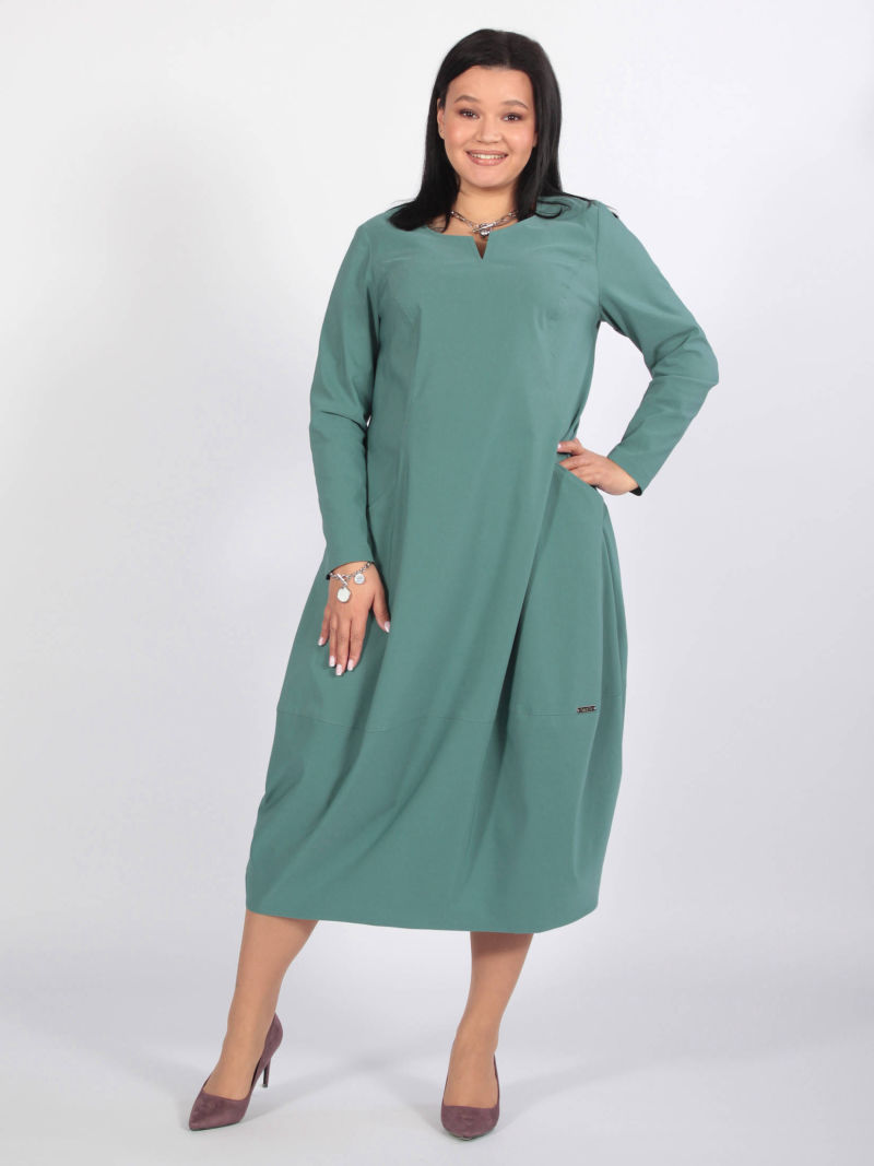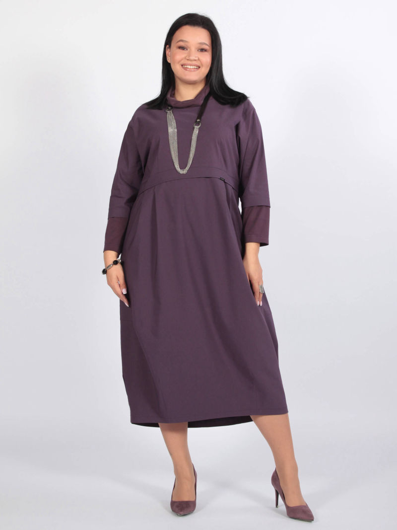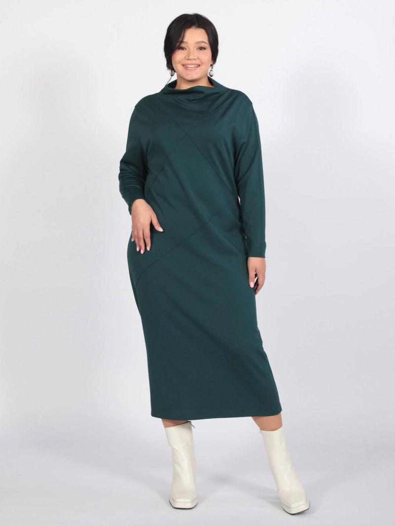 Базовое трикотажное платье элегантной длины, ниже колена, из смесового трикотажного полотна. Уютное и пластичное трикотажное полотно формирует произвольные мягкие складки у горловины и подчеркивает благородное мерцание материала, а сложносоставная смесовая структура полотна обеспечивает комфорт в эксплуатации. У платья слегка спущенная линия плеча и цельнокроеный широкий воротник-стойка. Диагональные линии-защипы и их пересечения, как росчерк пера художника придают динамику модели и формируют образ.Plus size/плюс сайз/большие размеры/для полных женщин/надин оверсайз для девушек/белорусская одежда женская/Беларусь/офисное женское Белоруссия/oversize/турецкая ткань/удлиненный/легкий сарафан/юбка/для подростка школа/для девочки школьная/туника удлиненная/вечернее весеннее осеннее/праздничное трикотажное