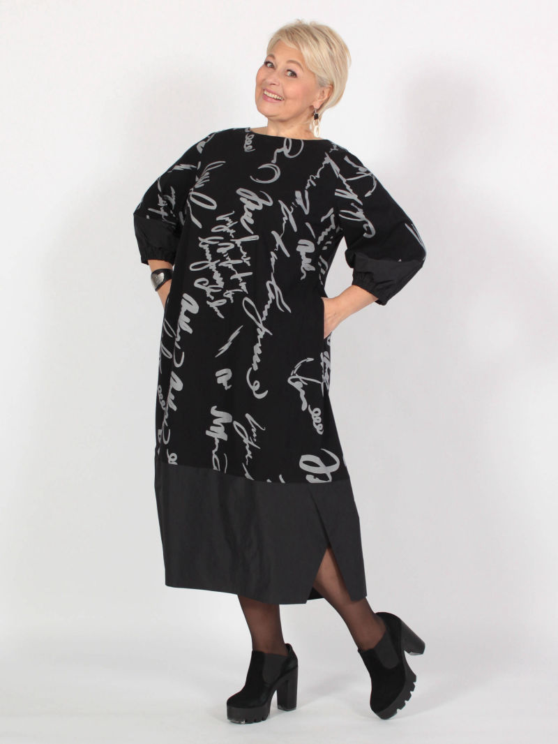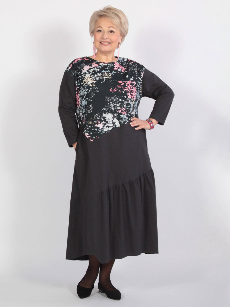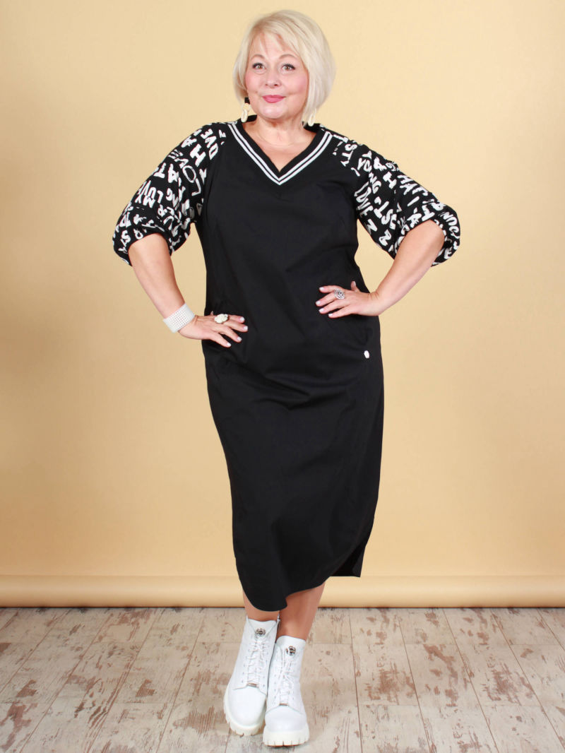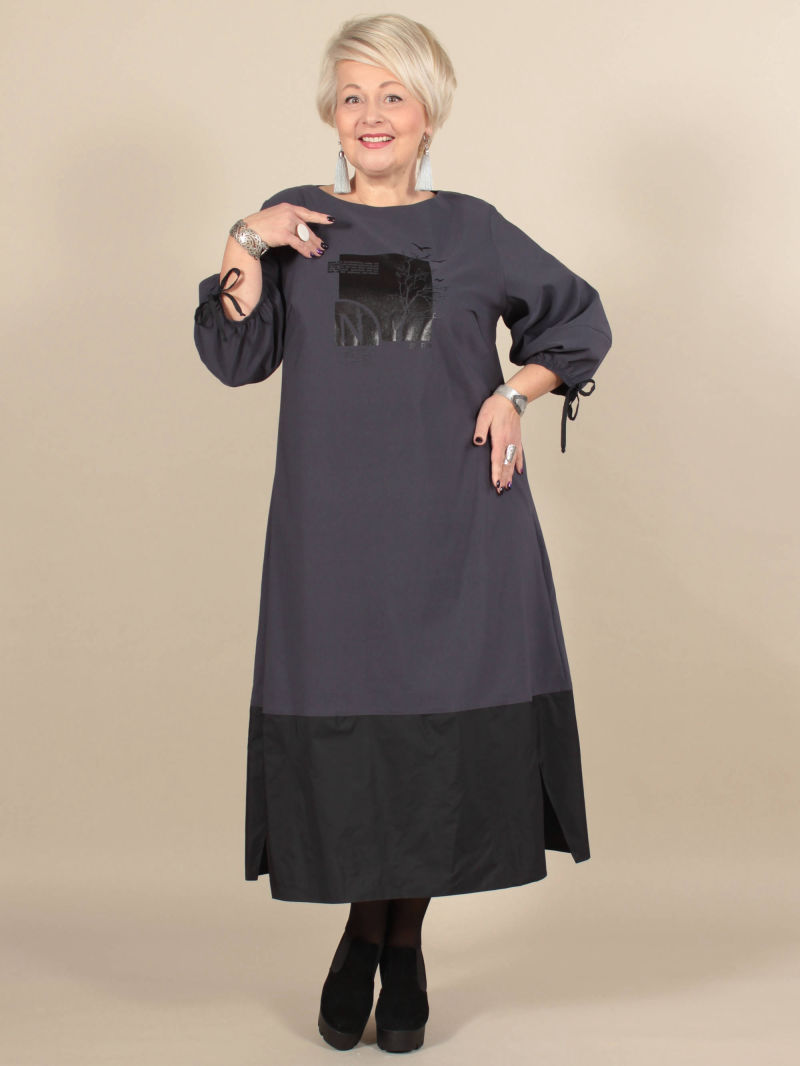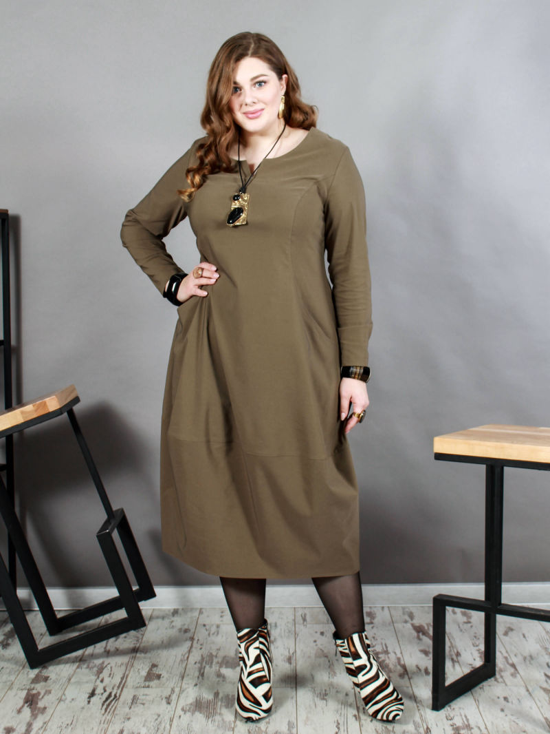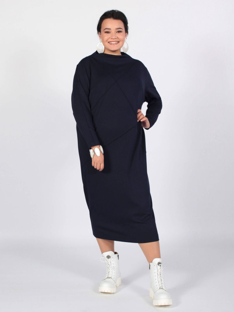 Бывают моменты, когда хочется попробовать что-то новенькое, выйти за привычные рамки, но всё-таки быть понятой окружающими. Как раз для такого случая мы сделали это неординарное платье. Комфортное и стильное, оно декорировано подкройной полусферой из тафты и лентой вдоль бокового шва. Платье сшито из качественного приятного трикотажа. Рукав 7/8, линия плеча спущена. Есть удобный карман слева. plus size/плюс сайз/большие размеры/для полных женщин/надин оверсайз для девушек/белорусская одежда женская/Беларусь/офисное женское/свитер Белоруссия/oversize/юбка