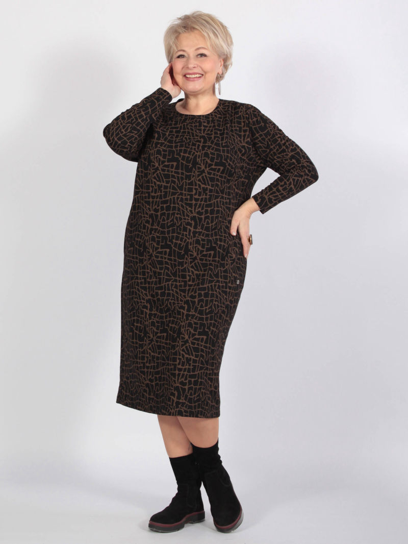 Классическое платье из трикотажа. Простое, удобное, элегантное. У платья прямой силуэт, спущенное плечо, карманы в боковых швах. Ткань трикотажная, средней плотности, хорошо держит форму, что важно в одежде. Современный набивной рисунок делает платье особенно актуальным./Plus size/плюс сайз/большие размеры/для полных женщин/надин оверсайз для девушек/белорусская одежда/Беларусь/офисное женское Белоруссия/oversize/повседневное/вечернее праздничное нарядное/туника удлиненная женская.