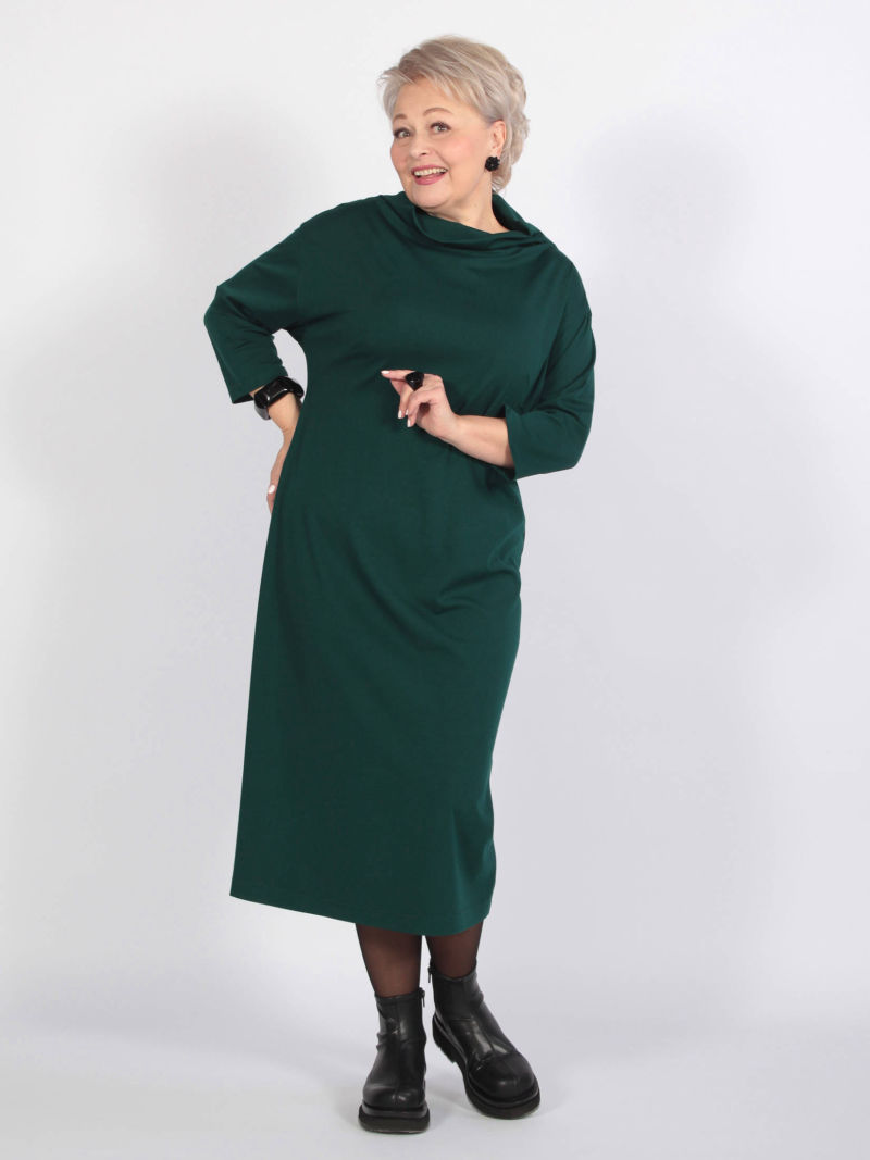 Платье из приятного на ощупь трикотажа, свободной формы, со спущенным плечом. Цельнокроенная горловина в форме трубы, мягко выкладывается в нужную форму. Длинный рукав, зауженный книзу. Само платье чуть ниже колен. Лаконичный крой и изысканная простота платья не оставит никого равнодушным. Plus size/плюс сайз/большие размеры/для полных женщин/надин оверсайз для девушек/белорусская одежда/Беларусь/офисное женское трикотажное теплое Белоруссия/oversize/поседневное/вечернее праздничное нарядное/туника удлиненная женская
