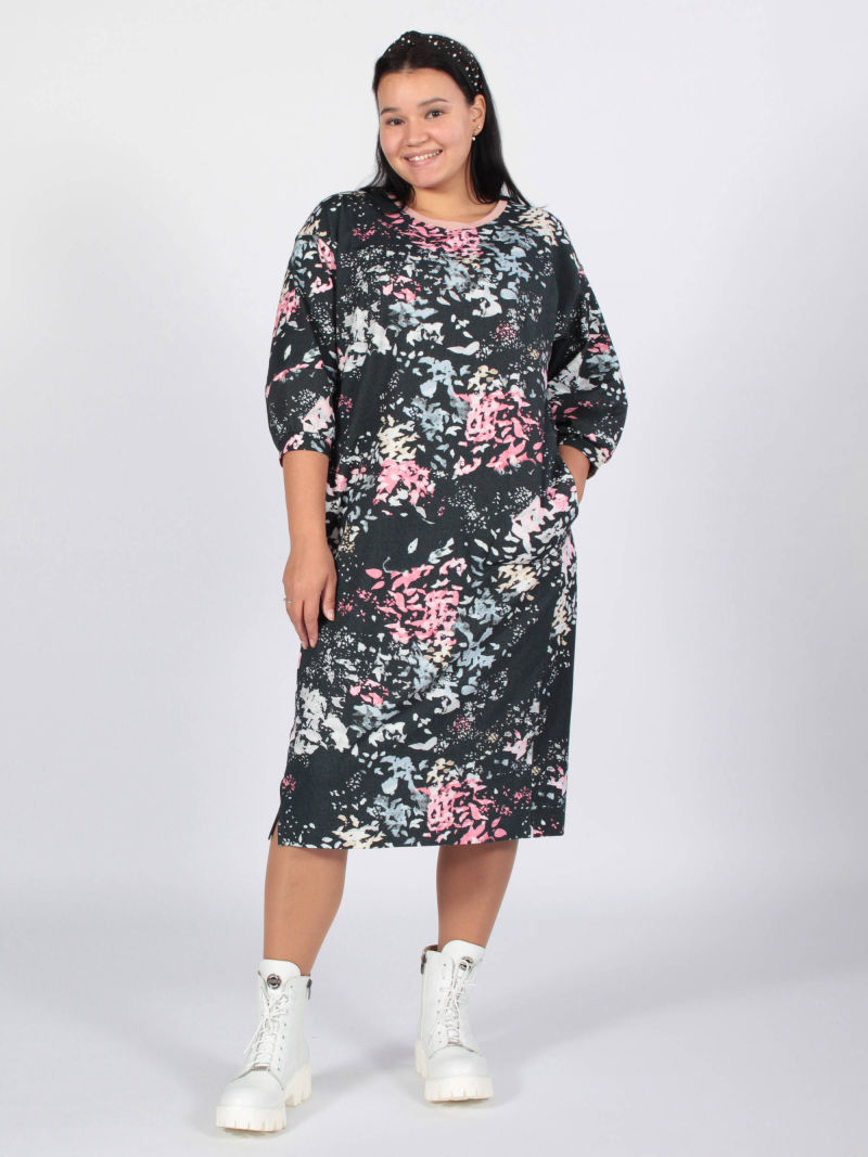 Универсальное удобное платье с хорошо зарекомендовавшим себя силуэтом. Само платье сшито из текстильной ткани со стрейчем, а воротник-хомут и нижние части рукавов мы сделали из мягкого трикотажа. Платье с завышенной линией талии, довольно свободное, в боковых швах есть удобные карманы. Plus size/плюс сайз/большие размеры/для полных женщин/надин оверсайз для девушек/белорусская одежда женская/Беларусь/офисное женское Белоруссия/oversize/турецкая ткань/удлиненный/легкий сарафан/юбка/для подростка школа/для девочки школьная/туника удлиненная/вечернее весеннее осеннее/праздничное/бохо/платье бохо/баллон