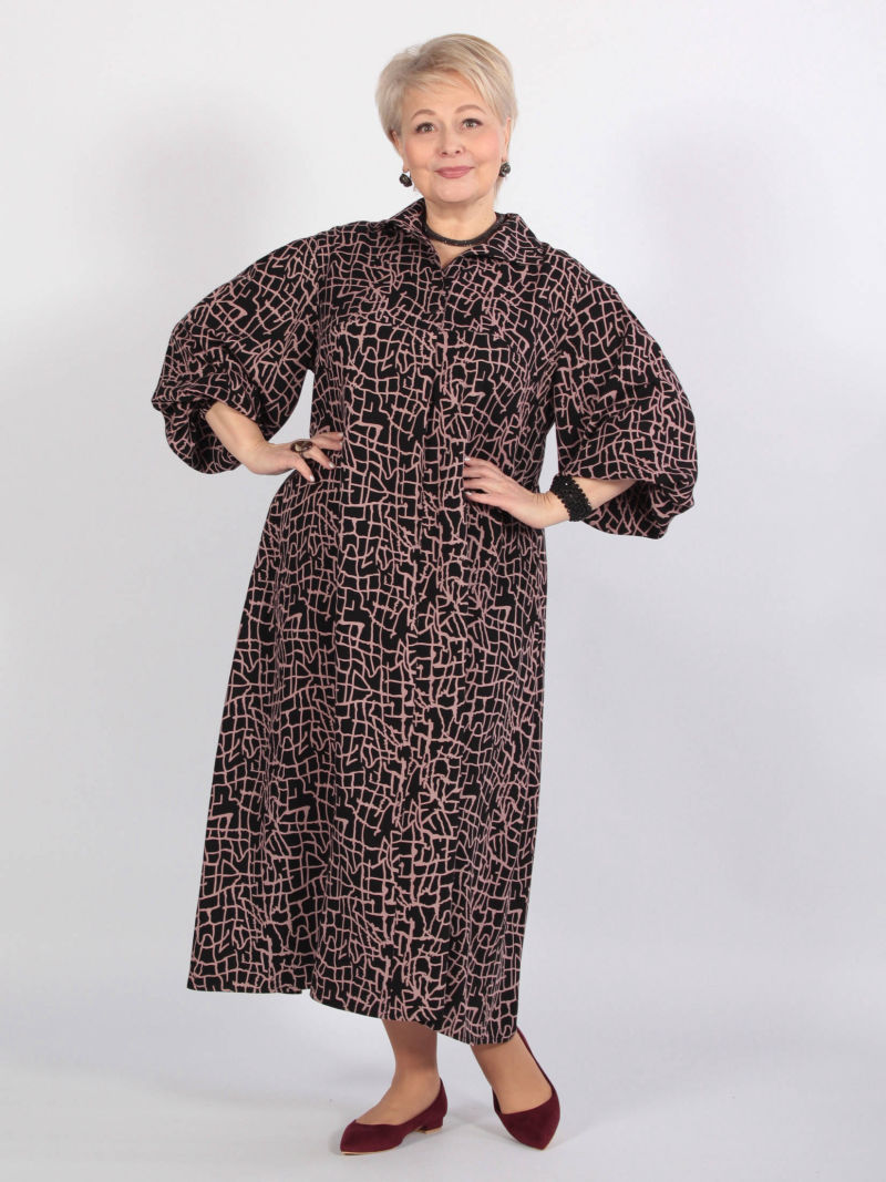 Очаровательное платье беспроигрышного А-силуэта. У платья очень красивые модные объёмные рукава, стильная печать графитового цвета, удобные карманы. Ткань для платья мы подобрали хлопчатобумажную, с эластаном. Она комфортная в носке и приятная к телу. По низу платья притачной отделочный бордюр из тафты.