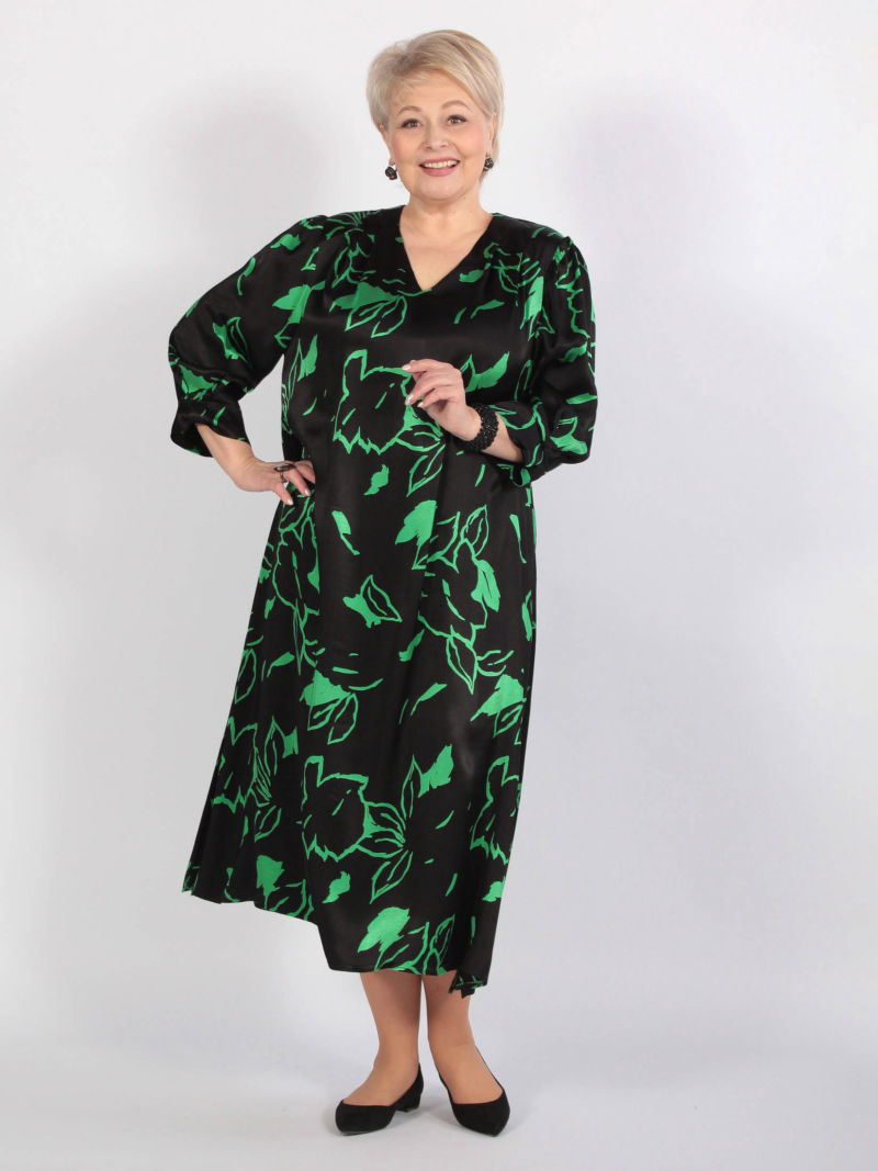 Эффектное платье из атласной вискозы с благородным блеском. Горловина округлой формы, линия плеча слегка спущена, что обеспечивает дополнительный комфорт в движении. Рукав укороченный, длинной 7/8 на притачной манжете с эластичной резинкой. Горизонтальный подрез выше линии талии и мягкие складки на юбке визуально вытягивают и стройнят фигуру, формируют плавный X-образный силуэт и мягкие фалды у ног. Plus size/плюс сайз/большие размеры/для полных женщин/надин оверсайз для девушек/белорусская одежда женская/Беларусь/офисное женское Белоруссия/oversize/турецкая ткань/удлиненный/легкий сарафан/юбка/для подростка школа/для девочки школьная/туника удлиненная/вечернее весеннее осеннее/праздничное атласное/шелк /шелковое/